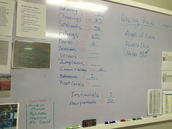 Next, I was introduced to the concept of tracking individual services based on revenue goals for the year. I thought, "I am a dentist! That doesn't make any sense. I can only diagnose and recommend treatment that a patient needs. I can't do that!" Then I got it....
