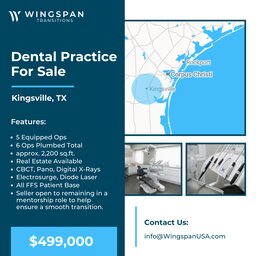 Dental Office FOR SALE with Equipment & Assets FOR SALE $499,000 - Kingsville, Texas --- with real estate available for $595,000. This...