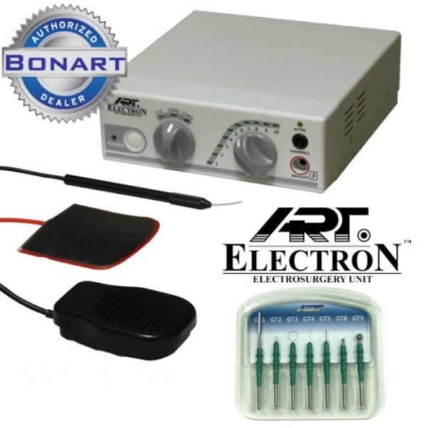 The New Style Bonart Electrosurg Comes with Green titanium Electrodes that are stronger than the old style electrodes. Lasting longer and cutting better. Operation mode of cut, coagulation, cut-coagulation. 10 different power settings. Electrodes are autoclavable, 1/16" diameter shaft. Made universal to Fit other major electrorsurgery brands. The Bonart E1 Electrosurgery Unit Has a 18 Month Limited warranty