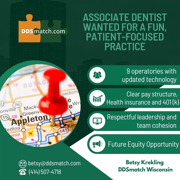 Join this busy 9-operatory practice where patients often comment, “Everyone is so friendly and happy here!” The practice owner needs a patient-oriented associate who can help serve the growing, loyal patient base that comes with a family-like feeling. Not to mention, there is equity opportunity after a couple of years! Ideally, this associate would have some endo experience.