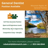 A thriving private practice in a scenic Wisconsin river town is seeking a full-time general dentist to join their team. Why this opportunity stands...