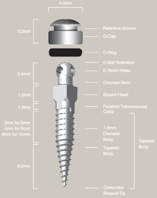 The undercut beneath the o-ball can also be used for direct attachment of ligatures, elastics and power chains and a removable stainless steel O-cap that locks in place around the O-ball can be soldered to custom appliances or placed to prevent mucosal overgrowth and prevent patient discomfort.