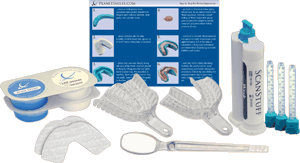 The ScanStuff-Single Patient Kit from Planet Smiles contains everything you need for upper and lower PVS impression in one disposable kit. The kit consists of one 50cc cartridge wash material, three mixing tips, two single arch putty packs, one upper and lower Coltene tray, two tray spacers, a Flecta disposable mirror and how-to instructions. Available with medium or large size trays. Visit www.planetsmiles.com for more information.
