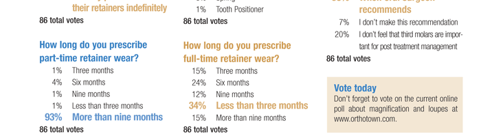 Retainers and third molar extractions are two things that aid in preventing relapse. Find out what other townies are doing for post treatment management in this poll conducted from June 17, 2008 to July 15, 2008. Don’t forget to take the current online poll about magnification and loupes at Orthotown.com