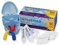 DentaSOAK is ideal for safe and effective cleaning of retainers, dentures, mouthguards and appliances. DentaSOAK kills more than 99 percent of stubborn, infection-causing bacteria and microbes in just 15 minutes. DentaSOAK is non-toxic, alcoholfree, and free of persulfates – a known allergen than can be toxic for some patients. To order online or for more information visit www.dentasoak.com. |