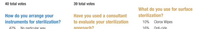 What is your process of sterilization and infection control in your office? Find out how other Townies participate in sterilization in this poll conducted from August 15, 2008 to September 19, 2008. Don’t forget to vote in the current online poll on Orthotown.com