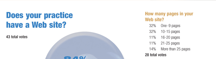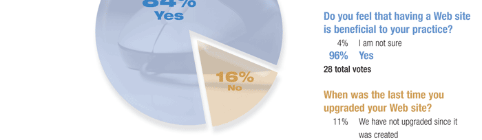 Find out what other orthodontists are utilizing when it comes to their practice’s Web site in this poll conducted from April 24, 2009 to May 30, 2009. Let your voice be heard and vote in the current online poll on Orthotown.com.