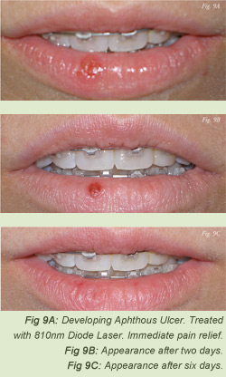 - Colvard, M, Kuo, P. Managing aphthous ulcers: laser treatment applied. J Am Dent Assoc,