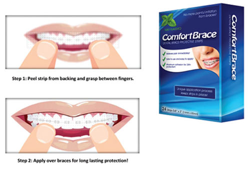 ComfortBrace is a new orthodontic braces product designed for maximum comfort.The clear adhesive strip, with 24-hour protection, provides full coverage against painful irritation. ComfortBrace does not interfere with eating, drinking, talking or sleeping while forming a protective layer between your mouth and braces. ComfortBrace provides only trusted, safe ingredients that do not contain bleach or peroxide. Also latex-free, ComfortBrace does not stain or oxidize dental brackets and wires. For more information, visit ComfortBraceStrips.com.