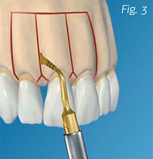 Vertical interproximal incisions are made, below the