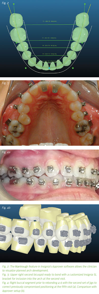 rebonded with the jigs to correct the placement that had been previously compromised by crowding (Fig. 4). Correction of the