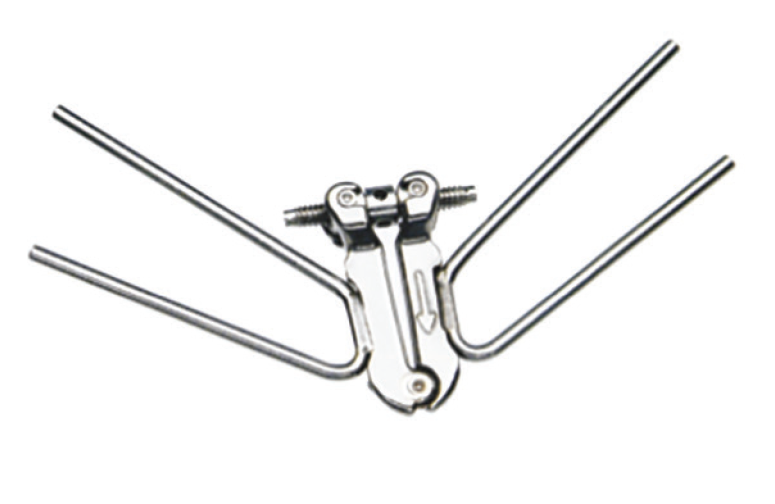 Fabricated from biomedical stainless steel, the expanding arms are laser-welded to the screw body with laser-engraved directional arrows. The mini-sized Exspider screw allows widening of the single anterior sector of the maxillary arch while still maintaining expansion at the molar level.