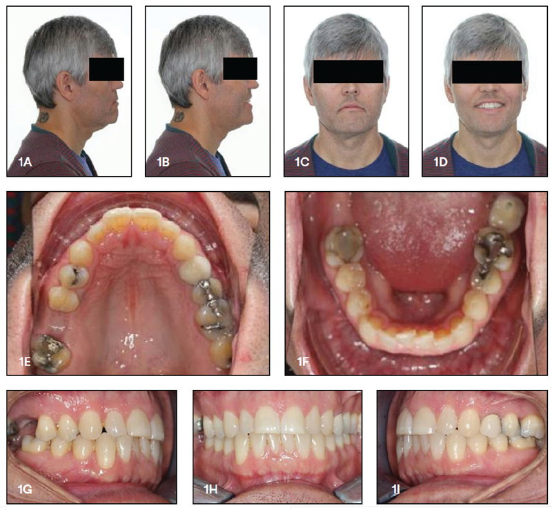 We had a 45-year-old male patient approach us with the desire to improve his alignment, close a few small spaces (between UR2 and UR3) and prepare for dental implants in the UR6 and LR7 areas (Fig. 1). The patient’s chief complaints were crowding and minor spacing. He also had a Class I malocclusion with moderate lower crowding and mild upper crowding (U&L, 3x3), along with a need for improved arch development and coordination (Figs. 2 and 3).