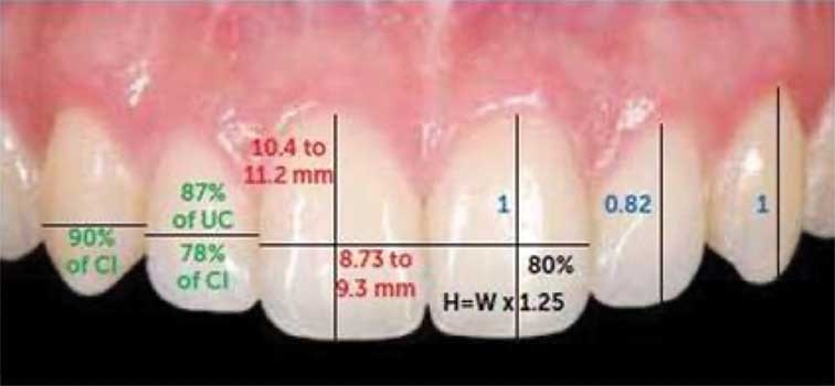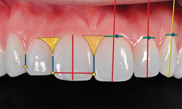 3. Tooth width and proportions. The width of teeth, especially in the anterior region, affects the appearance of a smile. Teeth that are too narrow or too wide can create an unbalanced look. Orthodontic artists consider the patient’s facial width, midline and the proportions of neighboring teeth to determine the ideal tooth width (Figs. 1 and 2).