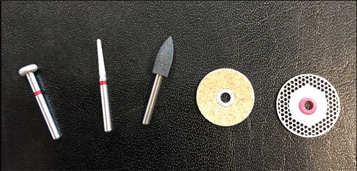 We use diamond discs, which come in a variety of options (single-sided, double-sided and a variety of thicknesses). After the diamond disc, we use an Intensiv Swingle IPR system to round contacts and sharp edges.