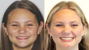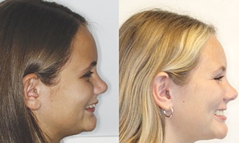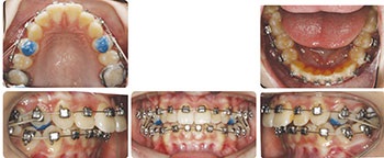 Most importantly, there would also be an important vertical component to this chosen plan. With Jolie’s cooperation, there would always be an active force of extrusion on the posterior teeth to support our goal of increasing vertical. While Class II elastics were worn during the day, there would be an extrusive force on the lower first molars. When the cervical pull headgear was worn during the night, there would be an extrusive force on the upper first molars.