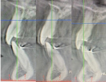 The previous case (Lea) and the lesson learned about how opening vertically will move the lower jaw not just down but also back were fresh in my mind. For Jolie, I understood that while opening her vertical would benefit her facial balance, it would also result in an even greater iatrogenic Class II occlusal burden. In the absence of orthognathic surgery (which was discussed with Jolie and her mother but declined) to move the mandible forward, attempting to non-surgically compensate for this problem by mesializing the lower dentition would seem to be an unwise decision, especially given the fact that Jolie showed a thin lower anterior periodontal phenotype with visible root scalloping (Fig. 2).