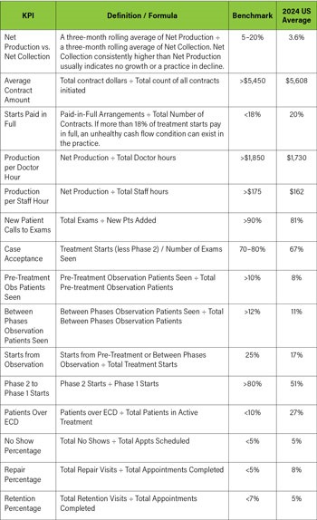 Understanding these broader industry trends is important, but to navigate them successfully, orthodontic practices must measure their own performance against industry benchmarks. Key performance indicators (KPIs) provide a clear picture of financial and operational health, helping practices make informed decisions that drive sustainable growth.