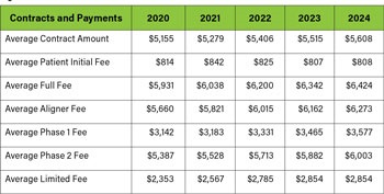The compound annual growth rate (CAGR) for the U.S. orthodontic industry remains at 0.2%, indicating stability but slow movement (Fig. 1). While growth has been modest, key performance indicators (KPIs) suggest practices are regaining momentum. To stay competitive, practices should target 3% annual growth, factoring in inflation. Maximizing contract fees and initial payments remains a crucial opportunity.