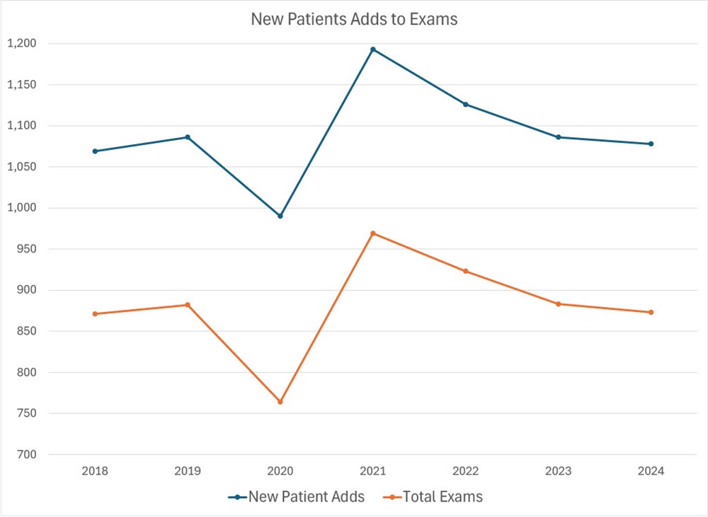 New patient flow is key, but tracking new patient adds to exams reveals where your practice may be falling short—whether in intake, marketing or scheduling. Understanding this metric helps improve conversion from calls to exams, driving practice growth.