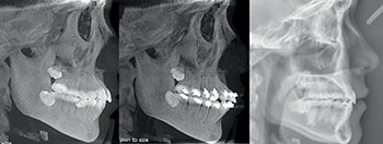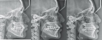 For me, the key to doing so is making a habit of taking a progress cephalometric X-ray at the pano/repo appointment for my borderline non-extraction patients. This typically happens at five to seven months into treatment. At this time, most alignment and leveling issues have been resolved. Additionally, it is also important to note that if arch expansion was part of the plan to increase arch length, much of this has already been achieved with expanded NiTi archwires. At that point, I like to reassess the upper incisor position by referencing the progress ceph and visually observing the patient’s side smiling profile.