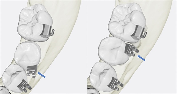 An additional advantage is that the base of each bracket or tube is digitally designed to match the tooth surface (Fig. 4), improving seating and positioning accuracy. When the appliance base conforms closely to the tooth anatomy and the prescription derives from the planned final arrangement, biomechanics can be expressed more predictably.